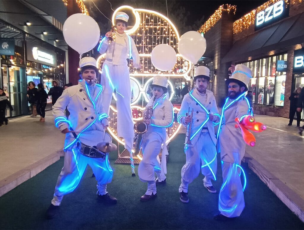 Nos artistes « lutins » sont farceurs, joueurs et musiciens. Un mélange idéal pour votre centre commercial, retail ou commune.