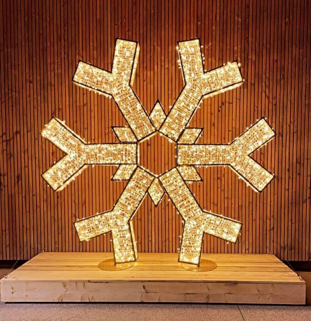 Scénographie de Noël avec des flocons lumineux
