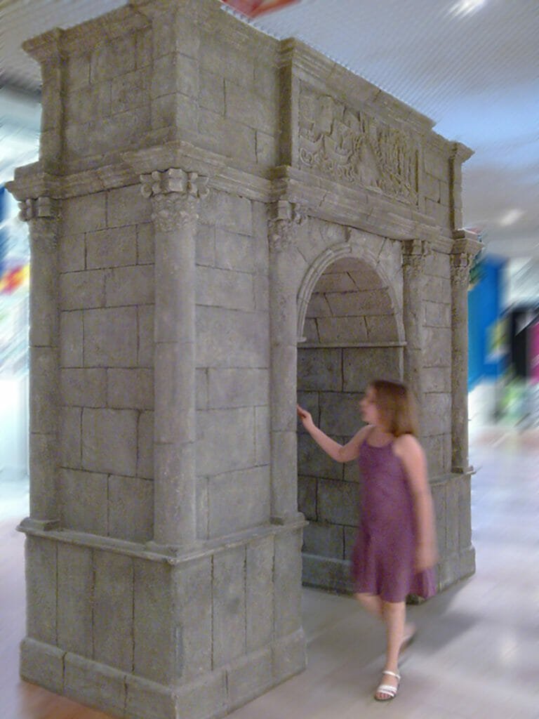 Reconstitution d’une arche romaine permettant aux clients de passer en dessous